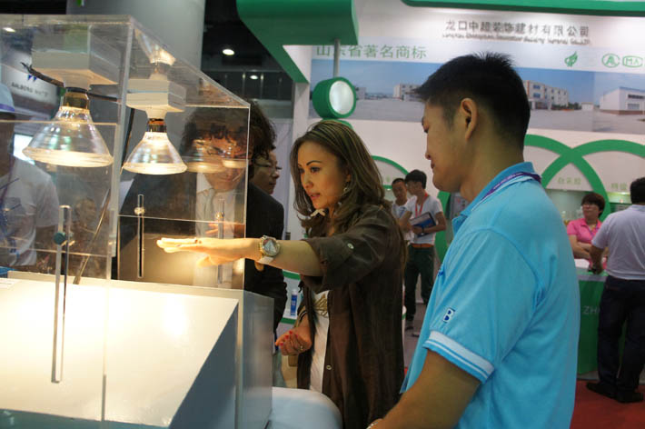 本屆展會(huì)廣州保賜利化工有限公司攜最新研發(fā)的“BOTNY”水性環(huán)保反射隔熱涂料系列產(chǎn)品,以“環(huán)!す(jié)能·減排”的綠色專業(yè)形象,富有創(chuàng)意的展位設(shè)計(jì)驚艷登場(chǎng),吸引了無(wú)數(shù)觀眾駐足咨詢。精致的樣板,全開放式的產(chǎn)品展臺(tái)演示,再次展示出強(qiáng)大的專業(yè)實(shí)力。成為展會(huì)上不可忽視的一道風(fēng)景線!肮(jié)能降耗行行都需要”的概念也因此深入人心。