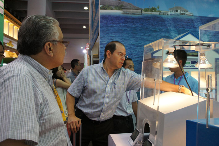 展會(huì)現(xiàn)場(chǎng)客戶體驗(yàn)區(qū)里,幾個(gè)新款獨(dú)特的,模擬太陽(yáng)光照射在金屬屋頂,混凝土屋面、建筑外墻的產(chǎn)品樣板演示道具,吸引了眾多觀眾的眼球。在我司工作人員的熱情接待下,客戶了解并感受了產(chǎn)品的測(cè)試效果。從現(xiàn)場(chǎng)的精密測(cè)溫儀器和客戶的親身感受來(lái)看,涂刷過(guò)我司隔熱涂料的樣板與涂刷普通涂料的樣板溫差最高可達(dá)15度,形成鮮明對(duì)比,產(chǎn)品效果立竿見影,得到了業(yè)界的高度認(rèn)可。很多觀眾在參觀了我司展位后都對(duì)我司隔熱涂料系列產(chǎn)品的涂裝效果,產(chǎn)品性能,質(zhì)量贊不絕口。