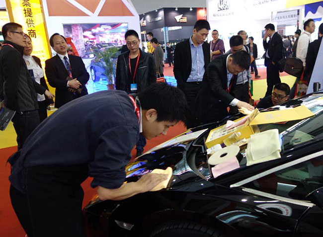 保賜利此次展臺(tái)不僅吸引了眾多專(zhuān)業(yè)觀眾,也為眾多客戶(hù)現(xiàn)場(chǎng)施工保賜利漆面鍍膜產(chǎn)品—— “保賜利碳晶鍍膜”,演示效果立竿見(jiàn)影,人氣瞬間推至高潮。展會(huì)現(xiàn)場(chǎng),保賜利也悉心為廣大經(jīng)銷(xiāo)商和專(zhuān)業(yè)觀眾安排了一場(chǎng)嘗鮮會(huì),將即將在3月登陸央視的保賜利產(chǎn)品廣告片率先讓參觀觀眾觀覽,并獲一致好評(píng)。