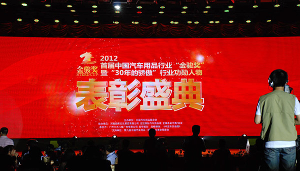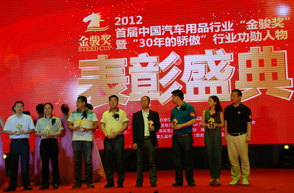 2012年6月26日, 2012首屆汽車用品行業(yè)金駿獎(jiǎng)年度頒獎(jiǎng)暨30年的驕傲行業(yè)功勛人物表彰大典在鄭州國(guó)際會(huì)展中心隆重舉行。此活動(dòng)由中國(guó)汽車用品聯(lián)合會(huì)主辦,第九屆中國(guó)汽車用品(鄭州)交易會(huì)、鄭州宏達(dá)國(guó)際汽車用品城、全國(guó)各省市汽車用品商/協(xié)會(huì)等共同協(xié)辦。頒獎(jiǎng)典禮現(xiàn)場(chǎng)聚集了眾多汽車后市場(chǎng)精英、各大媒體等,共同見(jiàn)證這一行業(yè)盛典。