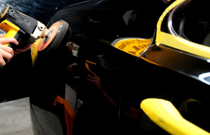 在平時(shí)的駕駛或風(fēng)雨天中,漆面都會(huì)因與空氣中的粉塵或細(xì)小粒子發(fā)生摩擦而產(chǎn)生劃痕。處理車漆劃痕需進(jìn)行拋光研磨(只有鍍膜和鍍晶才會(huì)有),把較深的劃痕修復(fù)成相對(duì)較淺的劃痕。研磨漆面首先需用膠帶把車框等處粘上,以免在施工期間損壞到車框。而施工時(shí)不同部位幾乎有相同的動(dòng)作,或蹲,或站,或扎馬步,研磨工具應(yīng)該怎樣拿?涂抹方式應(yīng)該怎樣?等等,都是嚴(yán)格按照操作指導(dǎo)流程及經(jīng)過專業(yè)培訓(xùn)才可以達(dá)到嫻熟的程度,因?yàn)槠崦嫜心ナ且婚T很講究技術(shù)的工作,用力稍深,損傷漆面;用力較淺,難以修復(fù);姿勢(shì)不對(duì),研磨面積會(huì)變等等,因此,研磨技師們需經(jīng)過專門培訓(xùn)和嚴(yán)格考核方能擔(dān)此大任。另外,研磨的環(huán)境也很重要,如果看不到或看不清漆面的細(xì)微劃痕,即使再有技術(shù)的技師也無(wú)能為力,這就需要全方位安裝照明燈或在光線通透的環(huán)境下進(jìn)行了。
