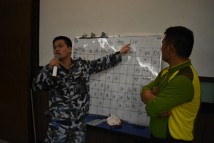 第二個(gè)環(huán)節(jié)是分戰(zhàn)隊(duì),12人為一隊(duì),我們最終誕生了“龍王隊(duì)”、“汪汪隊(duì)”、“戰(zhàn)虎隊(duì)”、“戰(zhàn)狼”以及“飛鷹隊(duì)”五支各具特色的隊(duì)伍。每個(gè)戰(zhàn)隊(duì)都有自己爭(zhēng)氣而響亮的口號(hào),接下來的比賽大家都士氣滿滿、信心十足。