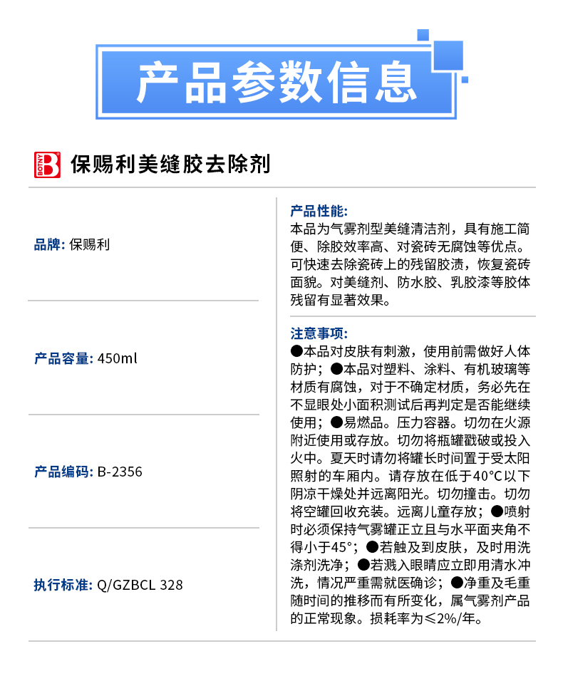 保賜利美縫膠去除劑,快速滲透,輕松去膠,安全環(huán)保,還你一片光潔亮麗的磚面。