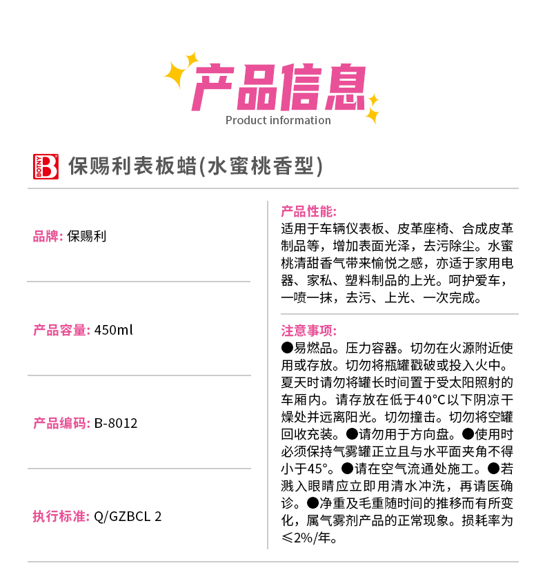 保賜利表板蠟[水蜜桃香型],深層滋潤(rùn)、延緩老化、桃香四溢,讓皮革煥發(fā)迷人光澤!