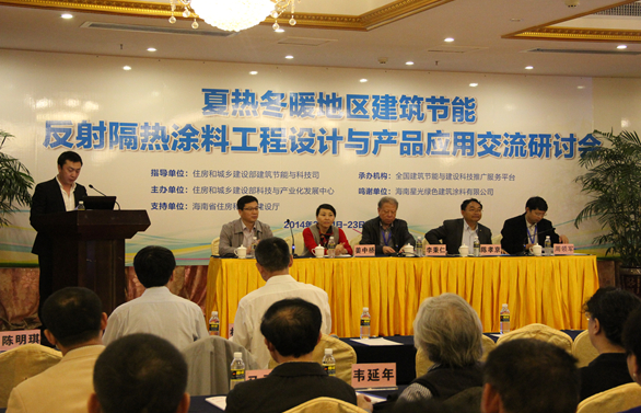 會(huì)上,海南省住房和城鄉(xiāng)建設(shè)廳建筑節(jié)能與科技處調(diào)研員杜治倉(cāng)、行業(yè)標(biāo)準(zhǔn)《熱反射隔熱涂料應(yīng)用技術(shù)規(guī)程》主編單位福建省建筑科學(xué)研究院總工程師趙士懷、高級(jí)工程師林美分別針對(duì)反射隔熱涂料在海南地區(qū)的應(yīng)用、國(guó)家標(biāo)準(zhǔn)熱反射涂料應(yīng)用研究與標(biāo)準(zhǔn)編制情況作了主題演講。全國(guó)建筑節(jié)能與建設(shè)科技推廣平臺(tái)反射隔熱涂料專家陸丕禾、廣東省特種涂料工程技術(shù)研究開(kāi)發(fā)中心主任陳中華、中南大學(xué)化工學(xué)院教授馬承銀、四川建筑科學(xué)研究院教授韋延年、三亞建筑工程質(zhì)量檢測(cè)中心主任渠榮篯、分別就反射隔熱涂料的應(yīng)用現(xiàn)狀與發(fā)展方向、納米復(fù)合隔熱抗污外墻涂料的制備及性能研究、夏熱冬暖地區(qū)反射隔熱涂料節(jié)能效果的評(píng)價(jià)研究、對(duì)建筑反射隔熱涂料研發(fā)應(yīng)用和檢測(cè)測(cè)試建議看法等相關(guān)內(nèi)容作了精彩演講。廣州保賜利化工有限公司、海南星光綠色建筑涂料有限公司、中國(guó)航空工業(yè)集團(tuán)公司北京航空材料研究院、北京恒固防腐工程有限公司、北京愛(ài)萬(wàn)提斯科技有限公司的負(fù)責(zé)人分別就最新的反射隔熱涂料成果、綠色建筑涂料技術(shù)工程案例、便攜式太陽(yáng)光譜反射儀檢測(cè)儀器應(yīng)用情況作了詳細(xì)介紹。