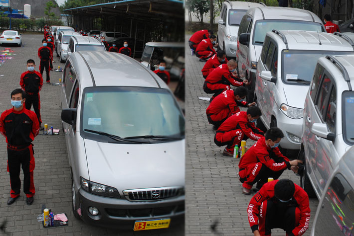 會議期間, 公司組織了全體業(yè)務(wù)經(jīng)理實操七彩噴膜施工,整齊劃一的專業(yè)形象,統(tǒng)一流程化的施工方法,讓業(yè)務(wù)經(jīng)理在熟知產(chǎn)品前提下,進(jìn)一步提升掌握產(chǎn)品的使用技能,旨在建立標(biāo)準(zhǔn)化,為新品銷售提供專業(yè)的市場指導(dǎo),加快產(chǎn)品應(yīng)用的普及。