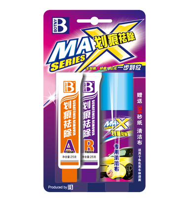 (A)劃痕修復(fù)蠟: 本品特為漆面處理短小劃痕而設(shè)計。含活性分解磨砂、填充劑成份。輕松去除氧化膜、頑固污垢,漆斑。配合漆面護理蠟使用可達到最佳效果。